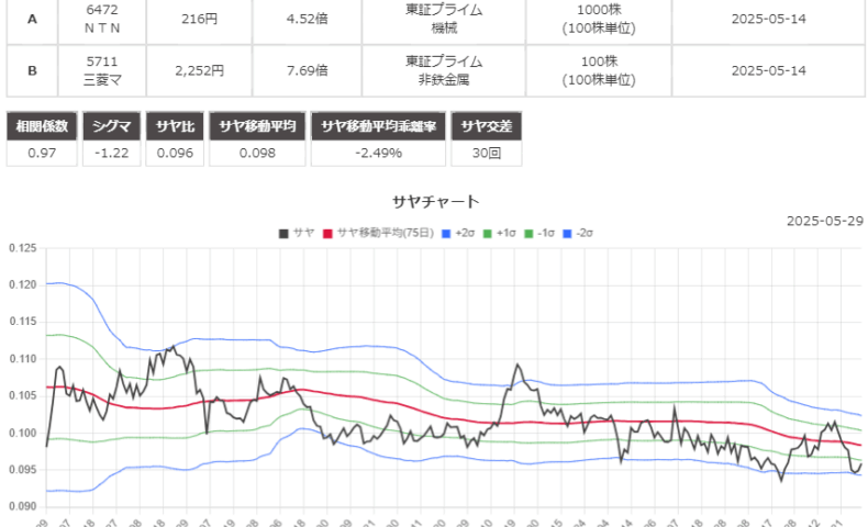 サヤ取りペアは、サヤトレ2.0を使って選んでいる。